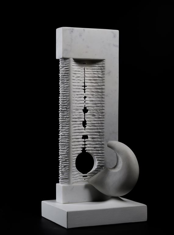 The circular element designed as a symbol of spirituality, poetry and the parallelepipedic element to evoke materiality, rigor.