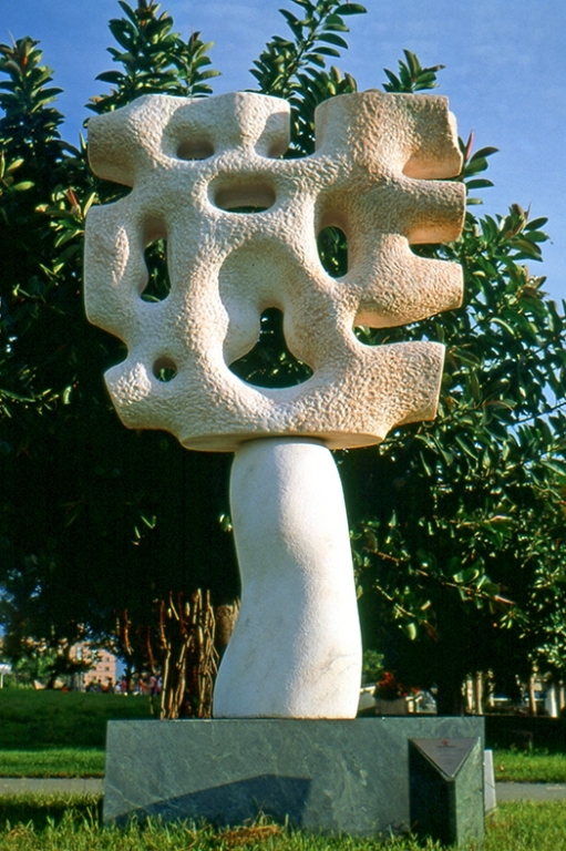 Born in Taipei in 1967, Hu majored in sculpture group of Fine Art Dept. and graduated from Taipei National University of the Arts in 1992. He took M.A. diploma from same school in 2010. During school years, he won many medals of sculpture in many art exhibitions. During his study, Hu’s works had won medals of Taipei Exhibition of Arts, Exhibition of Hsin Jhan Wa, Provincial Exhibition of Arts and Biennial Exhibition of Modern Arts. His great ambition was demonstrated from his stone sculpture “Repetition” which is with 400 cm height and the wooden sculpture “Repetition” which is with 350 cm height in 2003, which spread vertically at the corner of exhibition and seemly possessed the qualities of penetrating space. The image combined with ladder and seesaw, going up but unable descending down to the earth. It conveys an image of redemption as delivered by Sisyphus in Greek mythology, in which Sisyphus never ceases to roll rocks by foot on two mounts. Therefore, the creation “Repetition” combines the interests of delicacy and intelligence. As Hu constructs a strong self-identity and does not confine himself to single stone materials, so he often applies the materials such as brass, aluminum and carbon steel.