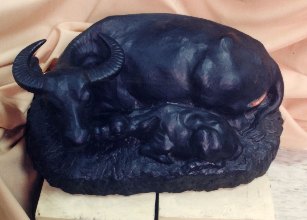 Chuang considered the theme of animals; therefore, he thought of familiar buffalo since he got known in childhood. On the way of one journey to Yian-Liao, he saw a flock of buffalos, he began to explore and to sculpture them. He studied and imitated renown sculptors who also chose theme buffalos, Tu-Shuei Huang, Sia-Yu Chen and early Yuyu Yang.