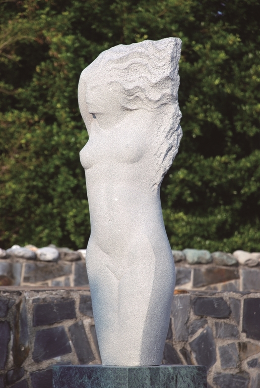 出生於彰化,從小就喜歡畫人物。退伍後想學木雕與石雕,當時曾到苗栗三義,不過最終卻被花蓮的土黏住,專心從事石雕創作,因為過去有學院扎實的寫實訓練,體裁上幾乎以女性人體為對象,作品中有石雕,還有泥塑、銅鑄與繪畫。作者說,面對真實的人,細節都能做得仔細很真實,以人體作為創作主題,以人間溫情的角度切入,手法介於寫實與意象之間,掌握寫實的技巧藏著「拙」趣,自認為創作雖非生活的全部,作品卻是生命歷程的註解。
