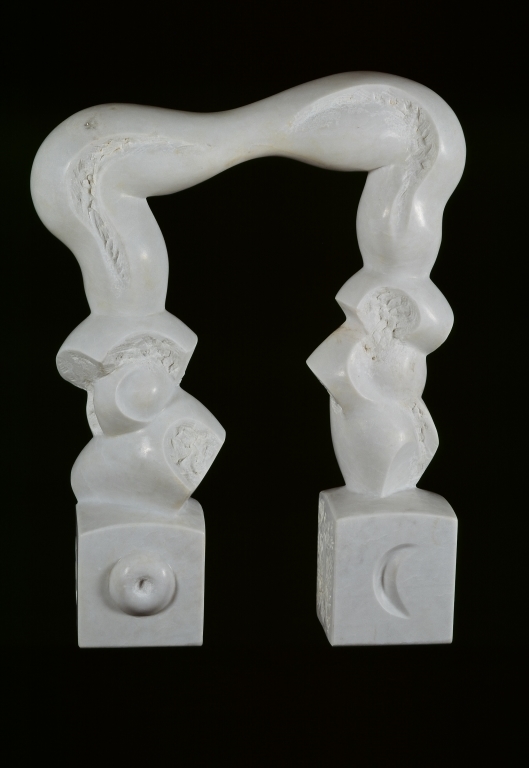 His early works were mostly in realistic style under the influence of his art education from school. While being an art teacher in both junior and senior high schools, he mainly worked on bronze sculptures in a figurative style shifting to abstract.