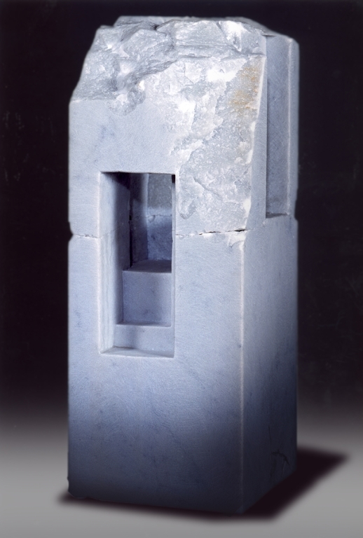 From his early childhood, Simmonds was fascinated by stone buildings, an affection that flows into his artworks, where stone architecture is used as a central theme. Particularly the medieval architecture, with its striving to get to a new sophistication of space, comes alive in the marble. Simmonds makes a play of architecture and ornamentation on a small scale, but the spaces created give the same feeling as in the buildings themselves; a place to rest, a place to travel with the eye and maybe find a moment of tranquillity. The marble is opened up, and inside is a space within a building that only exists in the viewer's mind. What you sense is the significance of space.