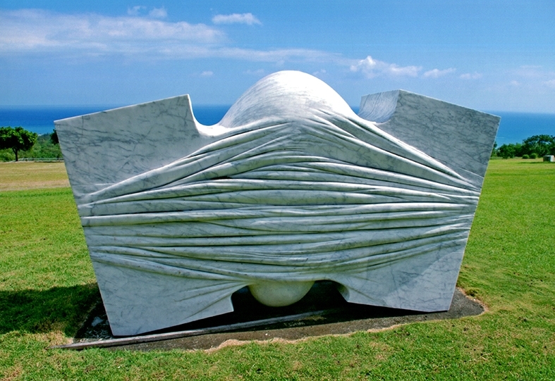 A TWO-METER-TALL seed-shaped white marble sculpture titled ""Proposal,"" by Italian sculptor Fabrizio Dieci is being displayed at the eighth China Sculpture Art Festival (CSAF) in Shajing, Shenzhen.