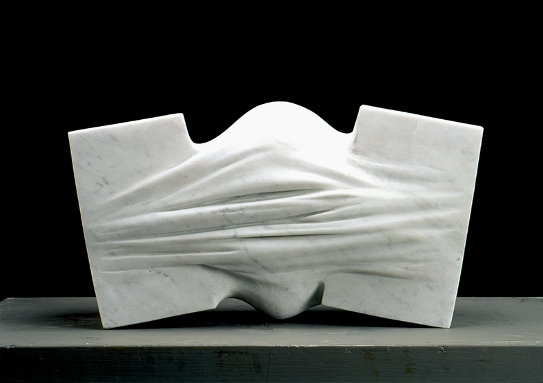 The surface of the oval stone is carved with lines, a style which appears repeatedly in his sculptures, suggesting part of the human body, such as tendon or muscle.