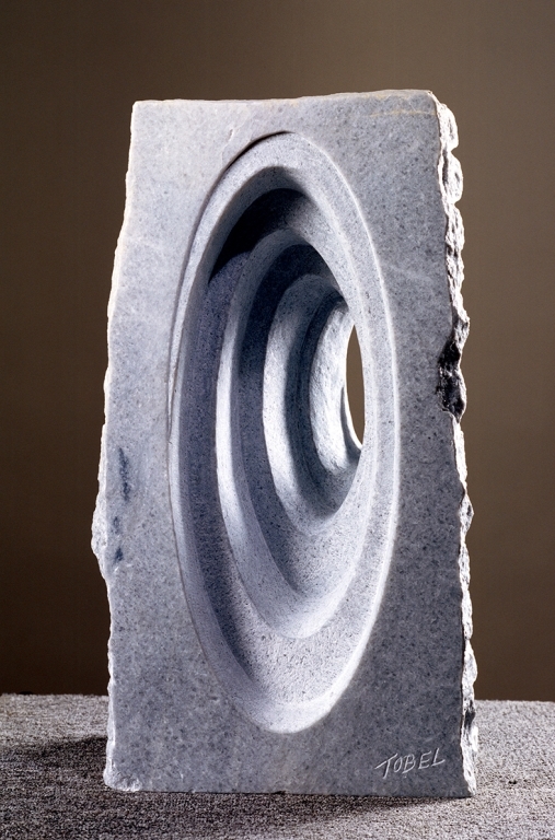 Tobel's starting point in his sculptural work is an old medium - stone - through which, as a contemporary artist, he stands in opposition to the zeitgeist. Unlike the traditional or industrial working of stone, Tobel turns the work process on its head: only the interior of the monolithic stone block will be treated. The heart of the work, resulting from the removal of material, is a reduced graphic of empty space. The outer surfaces, which have been broken into, retain the exterior nature of the stone: raw, strange, eternal.