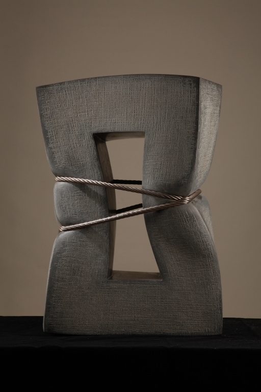 作品主要以堅韌的不繡鋼索結合石材質地,構成內在壓縮的張力,是對生命呈現一種「覺醒」的力量,不受外界現象所侷限,不被原有經驗所束縛。近期的作品運用英文T或C創作簡潔石雕作品,表現天道與人道相融合的天人合一理念,以堅韌的不鏽鋼索結合花崗石,藉由兩種恆久不變的媒材特質,對生命的過程中呈現一種「自我覺醒」的力量。