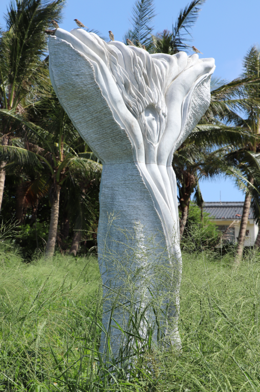 我的作品及想要當場展現各種能量呈平衡狀態的慾望……非常難在事先的工作計畫中構想出來,也很難據以挑選石材……。此處我可以給你們的是我的創作計畫叫做「大樹論」,我會用我自己的方式去解釋這個石雕作品的意涵。