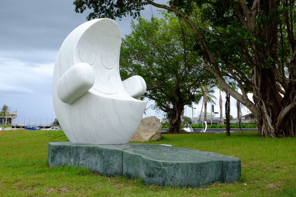 The sea of motherhood nurtures life and takes care of it, while the unique Crescent Bay in Chishingtan is like a mother's embrace, warm and tolerant. The theme of this work is the precious and rare sperm whale and the warmly embraced Crescent Coast, with the base carved on the map of Hualien, symbolizing the return of the wanderer to the warm embrace of Hualien, and said to him gently, "Welcome home!".