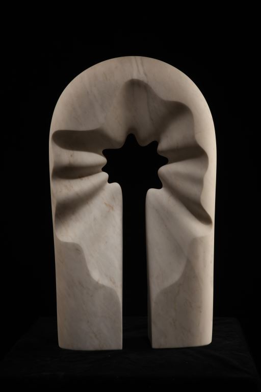 自古以來,門不僅象徵著入口,也象徵著隱藏的空間 — 在門戶後面的一股神秘力量。門隱喻著進入一個重要的空間,如同雕塑將我們引入空間的維度。光也在雕塑組成中發揮重要作用。挖開雕塑的中心,讓光通過,形成生動的感覺。 光改變材料的結構,讓它由硬變軟,反之亦然。 我的雕塑是一系列符合我們遺產的符號,穿過現在、變形、旅行到我們的未來。