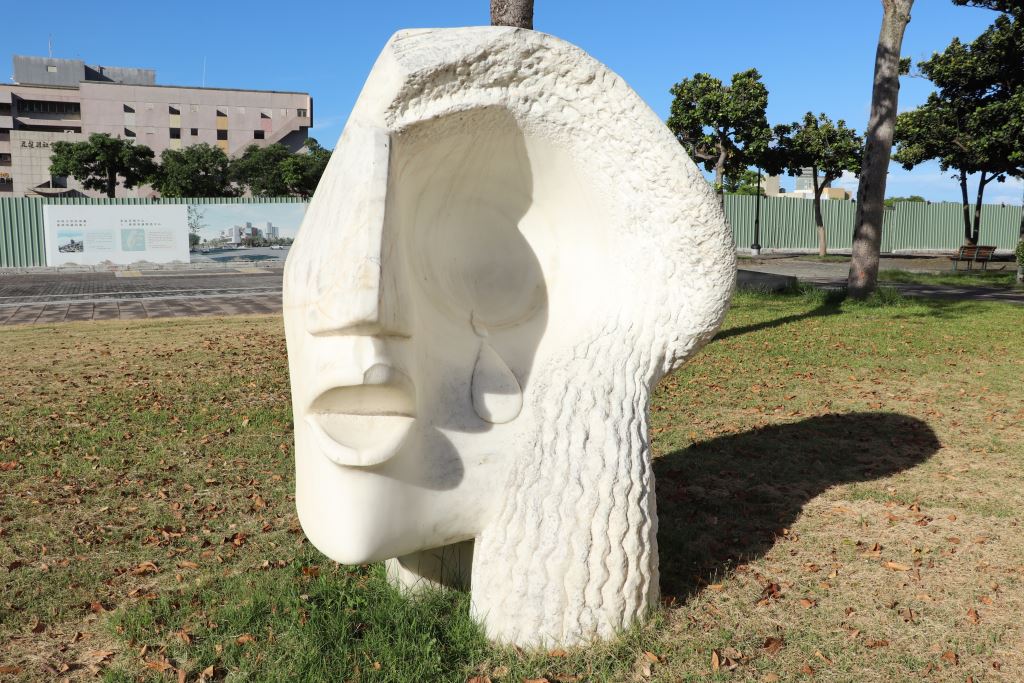 希臘神話中「蓋婭」象徵孕育萬物的大地之母。作者透過雕刻刀,藉重新詮釋畢卡索立體派繪畫風格,在白色石材上刻劃出「蓋婭的凝視」的立體造型。誇張的臉龐特寫,以蓋婭無聲的眼淚,控訴人類過度消費,對自然資源貪婪予取予求;例如1995年台泥決定在花蓮擴展廠房建設,此舉引起當地鄉親環保意識,社會大眾對於環境議題的覺醒,藝術家也希望盡自己的能力參與,盼望藉作品喚醒重視檢視自然與工業科技間的平衡點。