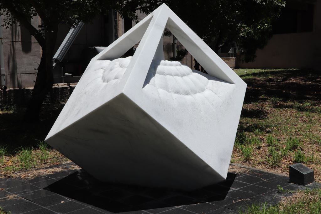 這個作品闡釋了宇宙的誕生,在大爆炸的狀態下賦予任何事物新生。 立方體以支點立在地面,下部份有山錐形雕刻,上端部分則為半鏤空。立方體及塑造其內涵的陡坡,代表人類意識的本質,包含創造性的理由及夢的本質兩者。這個立方體是我們的屋宇:「大宇宙」,藝術家視這個作品為獻給創造性之想像的讚美詩。