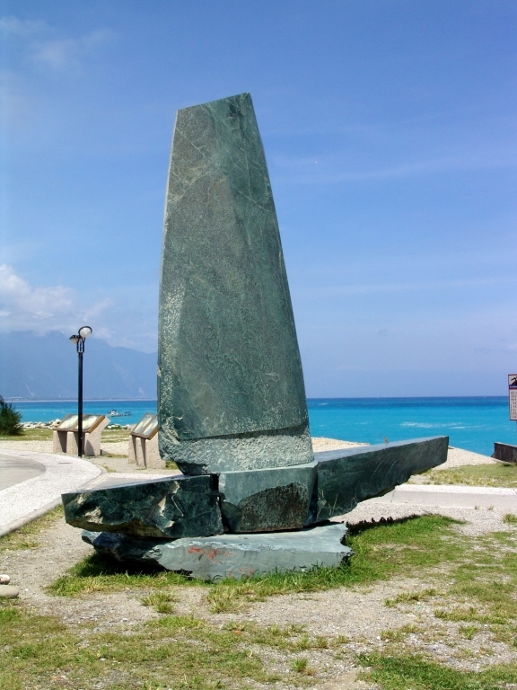 遼闊的太平洋濱岸,七星潭散置著幾座石雕。作品「風」五公尺高的石雕如一艘鼓漲風帆快速航行的船,將看不見的風做了最佳詮釋。