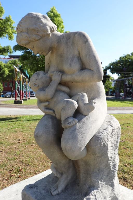 母親與孩子之間,不僅是一條臍帶與懷胎十月的關連,更是親密且無法取代的關係,作者雕塑一名年輕女性正在哺乳餵養著嬰兒,女子低頭嘴角微微上仰,慈愛地望著懷抱中的小孩。形容母愛不一定需要華麗的字彙,簡單的哺乳畫面就能深刻地刻畫出母子之間密不可分的情感,精巧的捕捉神聖的一刻,因為愛即存在於我們日常生活中每個小小片段,雕鑿出如此平凡又完美的天倫,親情就是如此祥和。