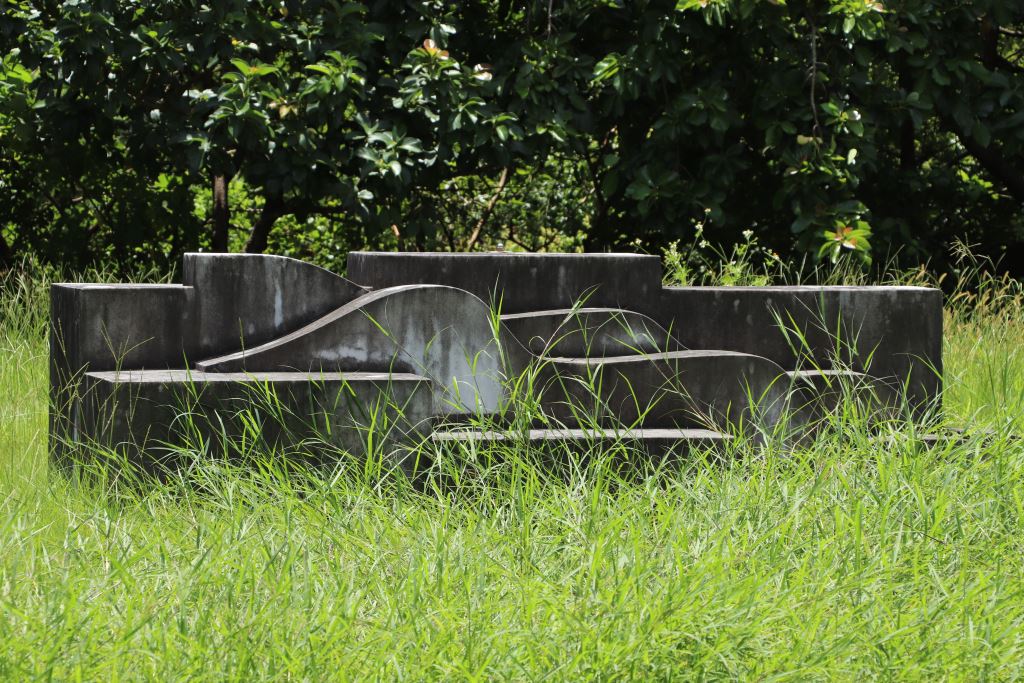 以冰冷的石雕,刻畫柔和雅緻的線條,此作品「環繞波浪的結構」象徵作者想傳達「我要征服美麗島,圍繞洶湧的波濤,建築家園。挖掘、雕鑿吧!深埋地底的心,不受動搖,依舊如青鳥般自由飛翔」。抱持平衡與寧靜的力量,展現在現實與虛擬的起伏不定顛簸中,堅定信念不受影響。