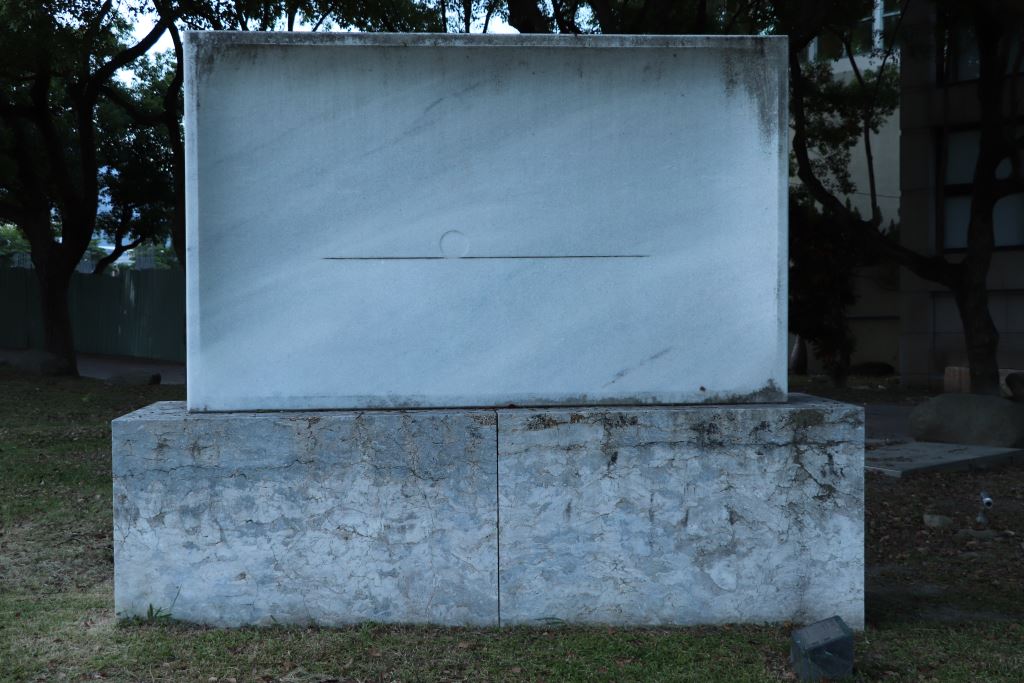 「地平線」是一件半抽象表現的作品,長方形的造型上運用厚薄差別,將中間橫向部位留得較薄,讓光線造成半透的亮度。他堅持想要呈現作品的方式,是太陽在地平線昇起時或是夕陽西下去時利用光線所透進的光,去呈現大理石中間極細的光線所造成的透明感效果。這種效果作為主要特徵,所以他拍小模型照時選擇在窗戶邊,才能真正展現作品的意境。