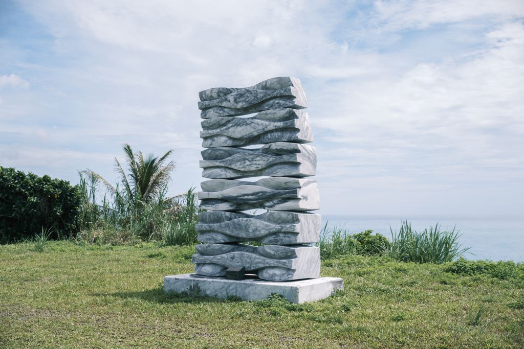 作者秉持自然就是美的理念,存著與石頭和平共處的態度來從事石雕創作。他認為石雕創作不是一個制式化的過程,必須結合心靈與理智,雕出作品的內部空間與外在型態所呈現的契合,才能表達出作品真正的意涵。作品「風與日光」傳達出風吹過地面,陽光傾瀉在地表上的景象,微風與陽光輕輕拂過自然的景色,為大地梳理成一個秩序。作者對石雕創作的理念,充分表現在有條理的秩序上,象徵陶醉在風和日麗的輕鬆爽朗日子裡。