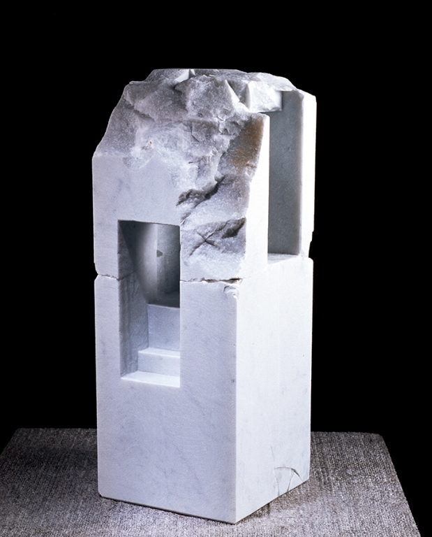在他孩童時期,他深受石頭建築物的吸引,那股對石頭的熱力湧入他現在的藝術作品裡,因此他常以石頭建築作為創作的中心主題,特別是中古世紀的建築,奮力爭取嶄新有歷練的一席之地,終於以大理石呈現在眾人面前。他為建築與裝飾製作一齣戲,規格雖小,但創作出來的空間跟在建築物裡的擺設感覺一模一樣,那是個可以讓人休憩、用視覺來旅行、也或許可以找到一份寧靜。大理石已開啟,裡頭是建築物內部的一個空間,那只存在觀賞者的心裡,你所感受到的就是空間的重要性。