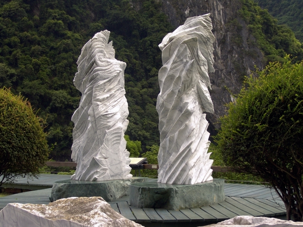雕塑作品從顏色、材料上看,都是比較柔和的,透過線條來表現各種動態,它們都是自然界很細微的東西,譬如樹影、海風、浮雲、岩壁...等等,可能很容易被人們忽略,但其實是很有美感的東西,所以作品的目的,更多表現自然界中細微的美感,進而歌頌自然。