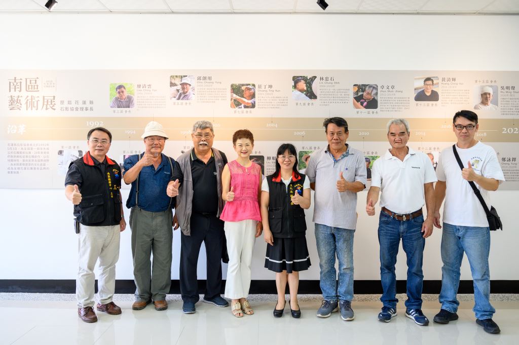 「2020花蓮國際石雕藝術季」將於今(109)年10月24日至11月22日於文化局園區盛大登場,除舉辦特展及戶外創作營之外,為服務南區民眾,縣政府自2014年起與玉里鎮公所合作,每屆將展覽活動延伸至玉里,獲得民眾熱烈迴響。今年「南區藝術展」於9月18日上午在璞石藝術館正式開幕,蒞臨貴賓包括花蓮縣政府南區服務中心主任王ㄧ仲、花蓮縣文化局副局長曾之妤、黃玲蘭議員、副議長潘月霞服務處主任蔡健祿、玉里鎮公所秘書鄧坤明、源城國小校長孫秉棚、花蓮縣文化局前局長陳淑美、花蓮縣石彫協會歷任會長林樹德、廖清雲、邱創用、黃河、馮朝宗及現任理事長吳明聲,以及璞石藝術創辦人邱創用、璞石藝術家林美佐、花蓮縣玉里璞石藝術發展協會會長邱玉金及會員們,同時花蓮縣文化志工隊也特別包車南下熱烈參與。