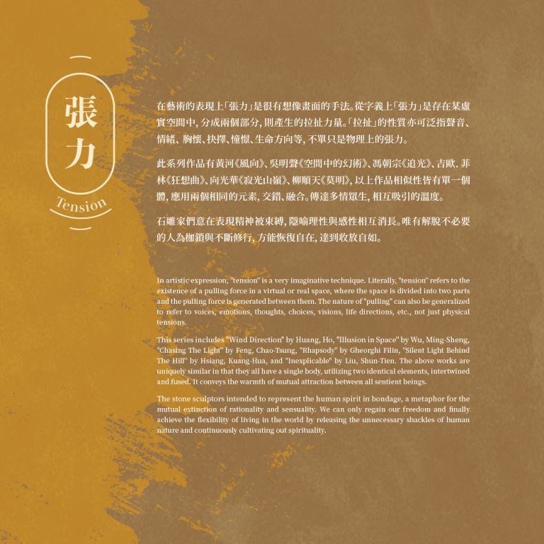 石雕家們不只讓您認識「石頭的故鄉」,更要讓您感受「石雕藝術的溫度」,藉助「互動」讓溫暖指數破表,讓您進入展場靈動四起,一顰一笑間花開頓悟。