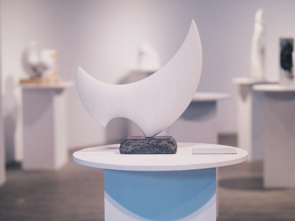 如同魏永賢的作品「領航」,以白大理石與蛇紋石為材,琢磨出一彎簡潔有力的造型,石材色澤如月般純淨,形似月的圓缺、舟的啟航;又如王標的作品「看見奇萊」,以白大理石做黑化處理,展現迷霧中的奇萊山景,石材正背面分別呈現不同山形。藝術家在大山大海間走出獨特的風景,在創作中一展其繆思與文化底蘊。