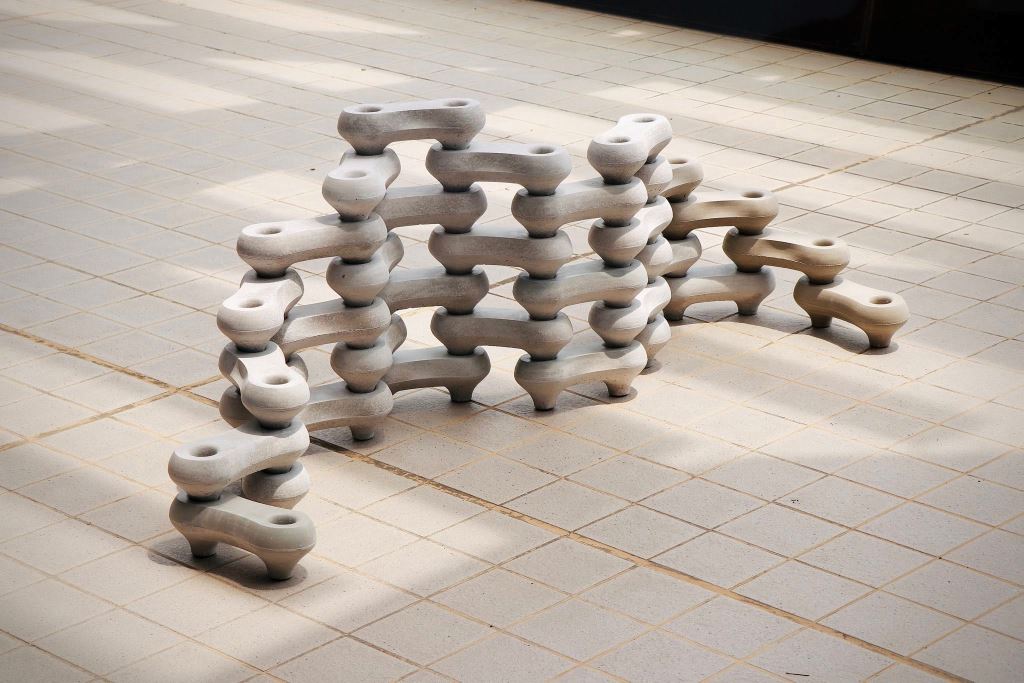 面對過去、推進當下後,積極展望未來,方能看見更多希望。「未來的形狀—科技中的創生循環」展區面向與環境共生的來日,開創石材餘料在循環再生與科技應用上的潛力,以C-Cube Lab與樂土(Lotos)等研發團隊的逐步實踐,啟發石材在永續領域中的全新想像。