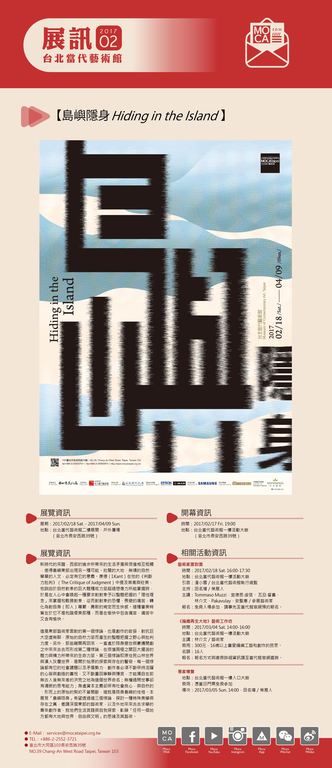 本展覽自106年2月18日起至106年4月9日止於台北當代藝術館展出,歡迎鄉親好朋友有空前往臺北一覽難得一見的「島嶼隱身」。