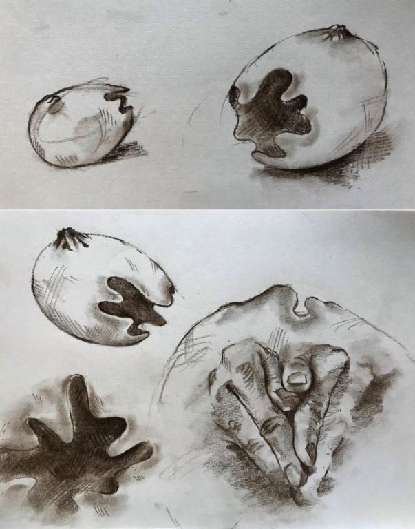 老師說 : 不論是觀念還是視覺,創作要突破都要先改變以往的思維與慣性,比方說柳丁是食物,在老師眼裡是材料,就能創作成雕塑。同理石頭如果不只是材料而是一種哲學,那是不是就有更多表現上的驚喜 ? 反正創作若沒有徒勞無功的過程,哪來結實纍纍的成果,嘗試才會發現更多可能。