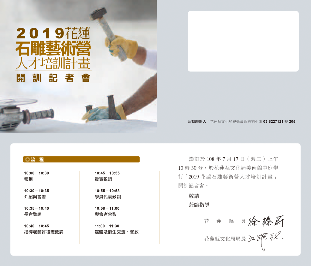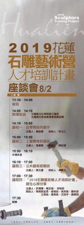 花蓮縣文化局「二○一九第四屆花蓮石雕藝術營人才培訓計畫」,十七日正式開訓嘍~