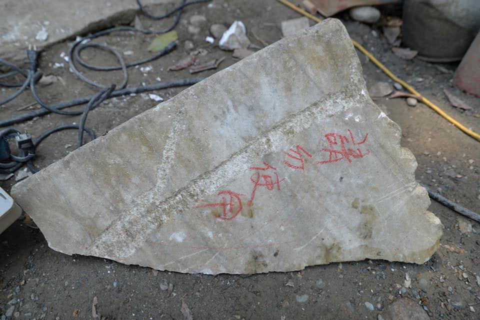 才發現「請勿使用」這四個字,許老師已經從這崩下的石塊裡發現東西了,淡定。