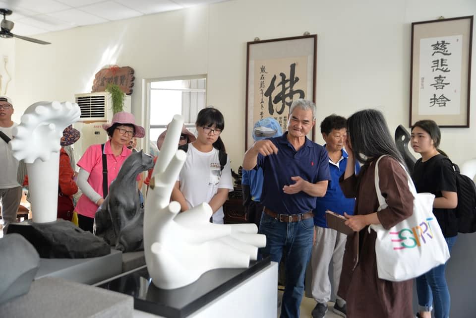 今日行程 : 學員+文化局導覽志工+老師們,一共四五十人,一起浩浩蕩蕩的到幾個精選重點參訪,了解到了石頭產業、石雕藝術與設計轉型在花蓮特色發展的脈絡。